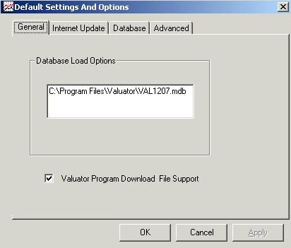 Program Update Checking may be DISABLED By Un Checking Valuator Program Download File Support Check Box.