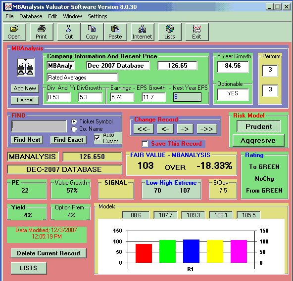 The MBAnalysis Valuator Software provides the serious investor tools to assist in refining investment decisions. We have developed methods that combine fundamental and technical analysis to accomplish that goal.